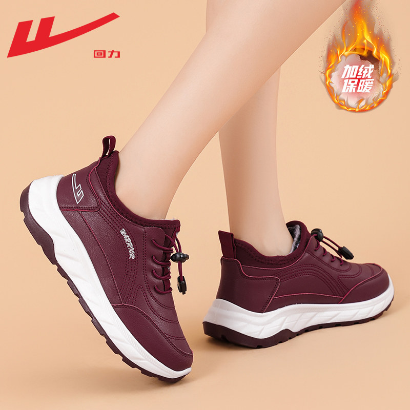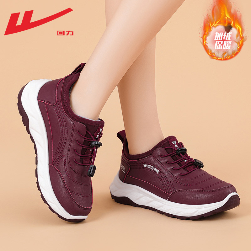 皮面防水雪地靴保暖棉鞋 回力妈妈鞋 老人鞋 冬季 女 加绒加厚2025新款