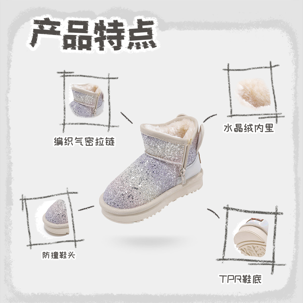 毛绒靴 加厚毛茸茸靴子短靴保暖棉鞋 厚底毛毛雪地靴女2025新款 冬季
