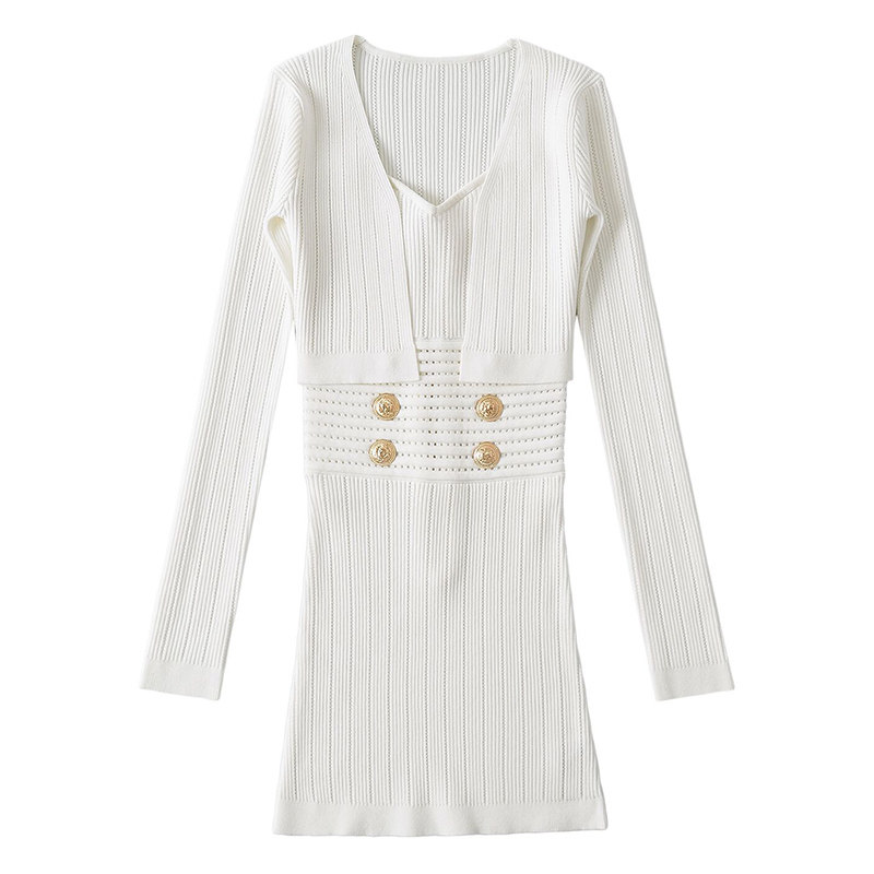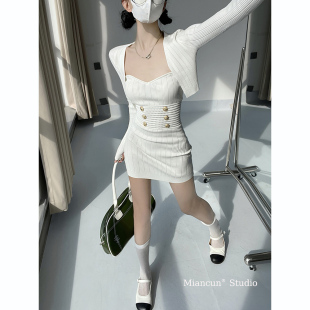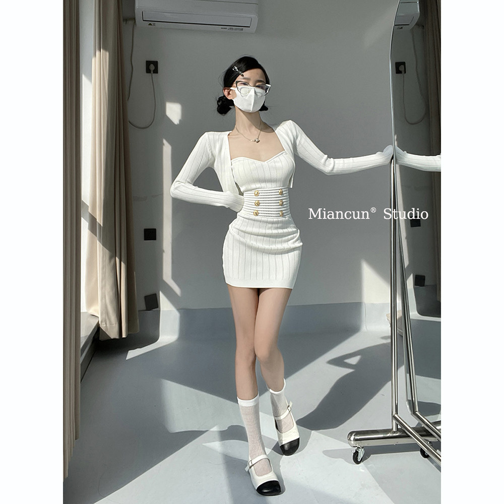 气质包臀短款 小香风针织抹胸连衣裙外搭罩衫 性感修身 新款 裙子 春季