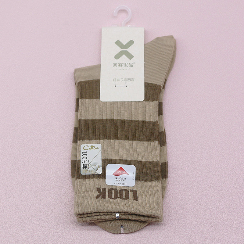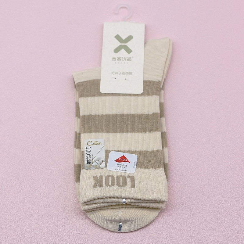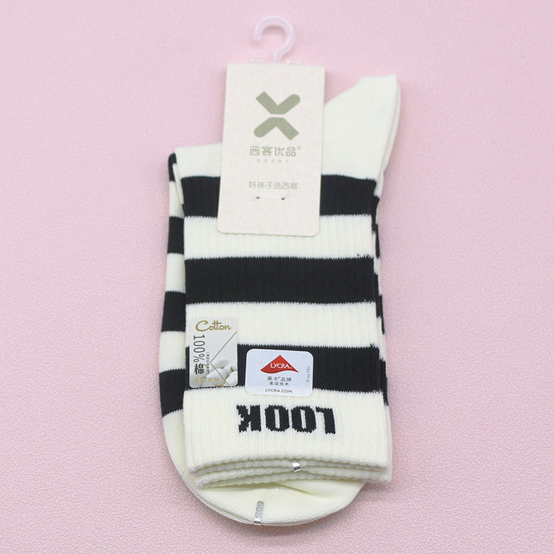 百棉条纹字母无骨吸汗中筒学生成人女袜HG1775 新品 西客优品 冬季