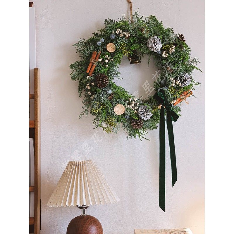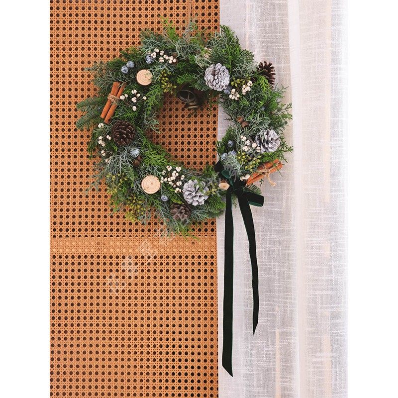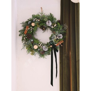 圣诞节花环纯手工门挂装 饰品DIY自制真树鲜活圣诞礼物摆件雪花松