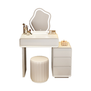 全实木梳妆台斗柜一体奶油风化妆桌现代极简风卧室高级轻奢化妆台