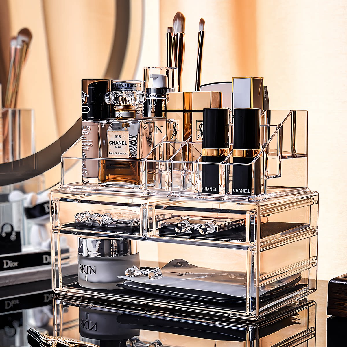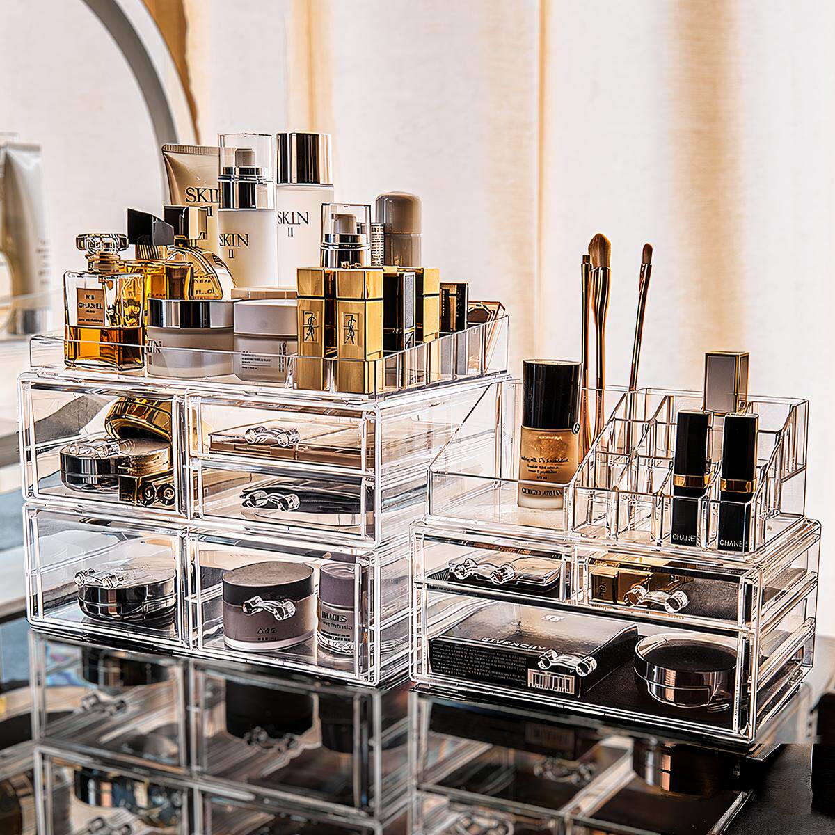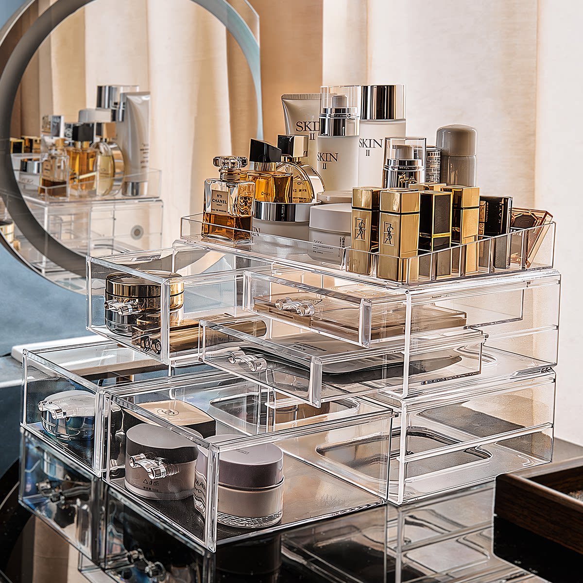 大容量护肤品收纳盒化妆品收纳盒抽屉式 口红彩妆粉底置物架梳妆台