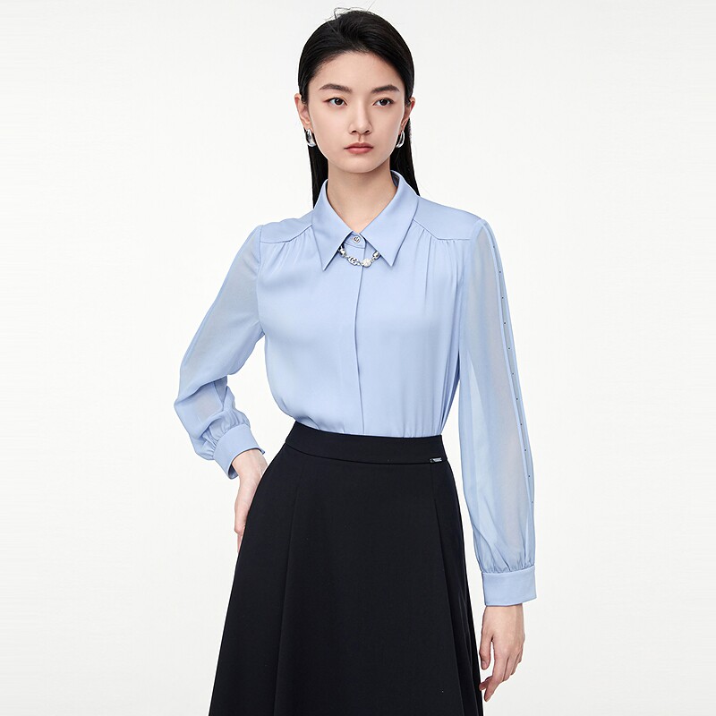 上衣女 穿搭通勤气质POLO领纯色衬衫 CADIDL卡迪黛尔商场同款 春季