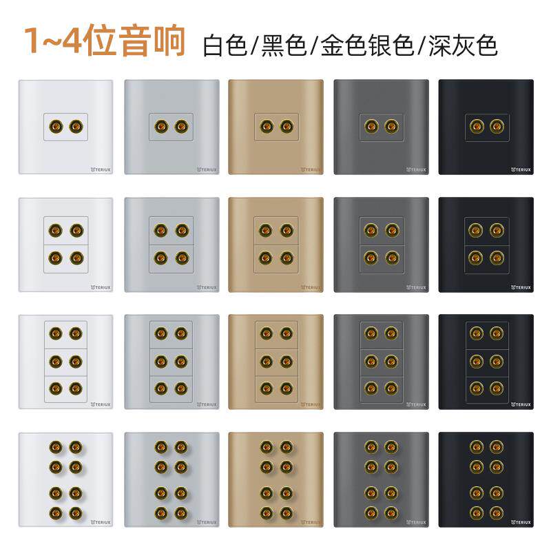 86型音响音频面板2头4头音箱喇叭插座红黑香蕉头接线柱5.1环绕8头