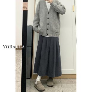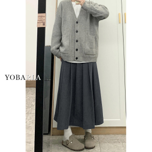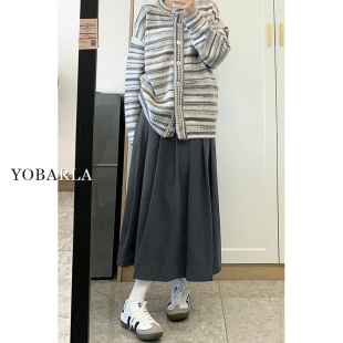 软糯a字半身裙 胖mm高腰显瘦中长款 灰色毛呢百褶裙女秋冬新款 大码