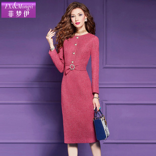 优雅气质修身 名媛轻熟时尚 包臀一步裙 新款 菲梦伊毛呢连衣裙女秋季