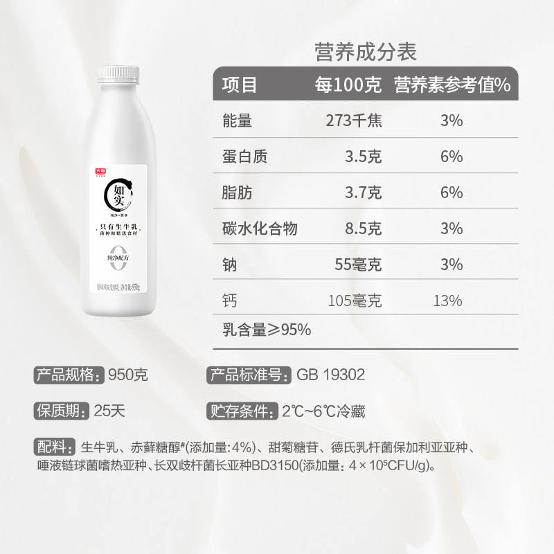 光明如实0蔗糖酸奶950g瓶装 5袋原味组合营养早餐酸牛奶低温 180g