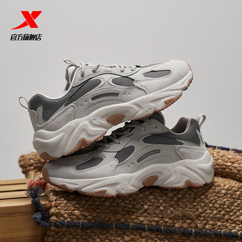 情侣款 女子运动鞋 2025新款 轻便复古老爹鞋 男鞋 特步洄游2.0休闲鞋