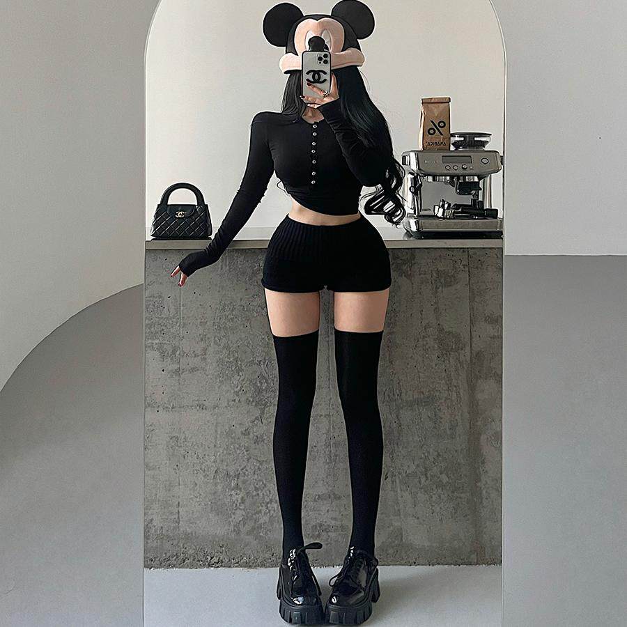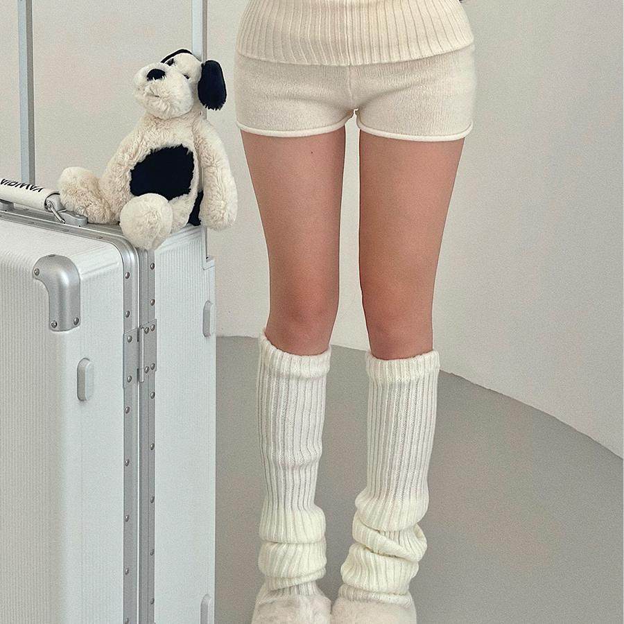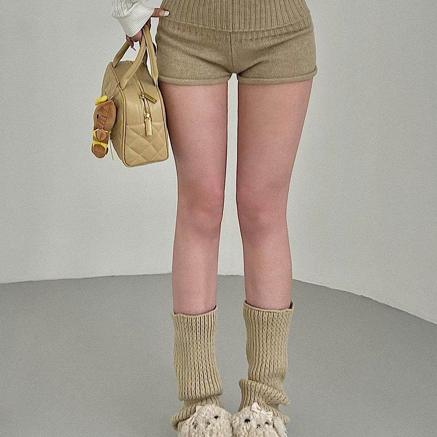 YoungGirlDay纯欲辣妹风高腰下翻裤 腰卷边显腿长弹力针织休闲短裤