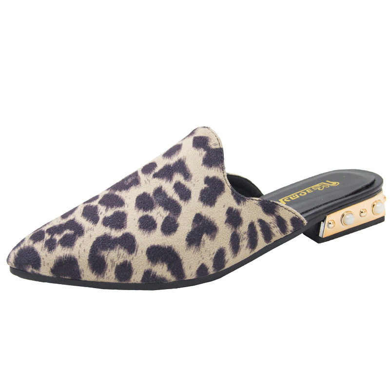 粗跟包头半拖女懒人凉拖鞋 豹纹拖鞋 时尚 新款 女尖头外穿2021春夏季