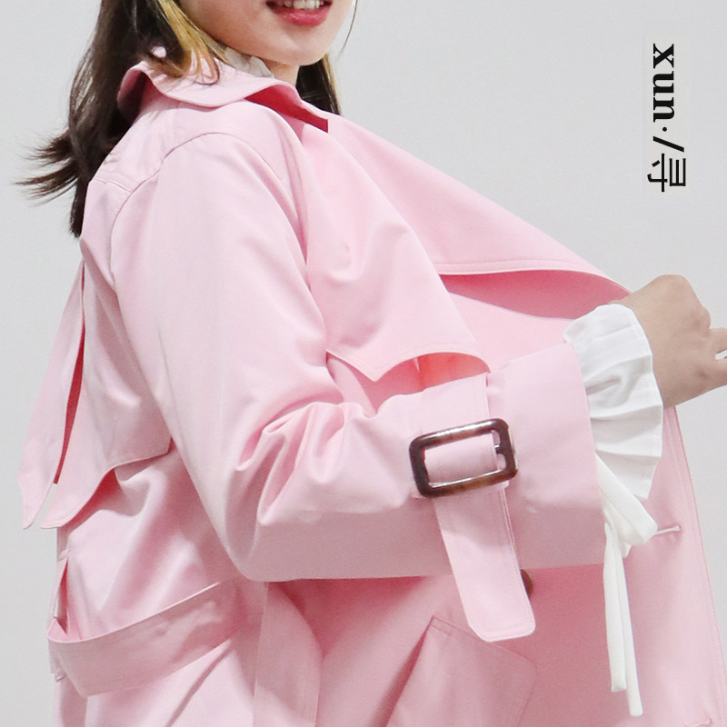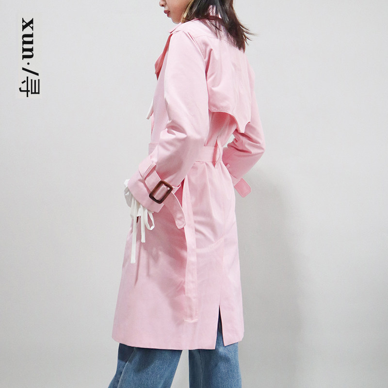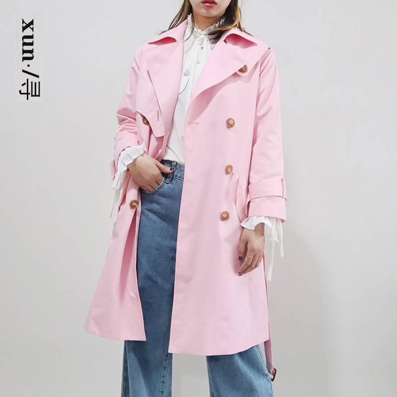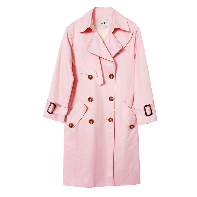 粉色英伦风中长款 收腰显瘦减龄外套 风衣女2021春夏新款
