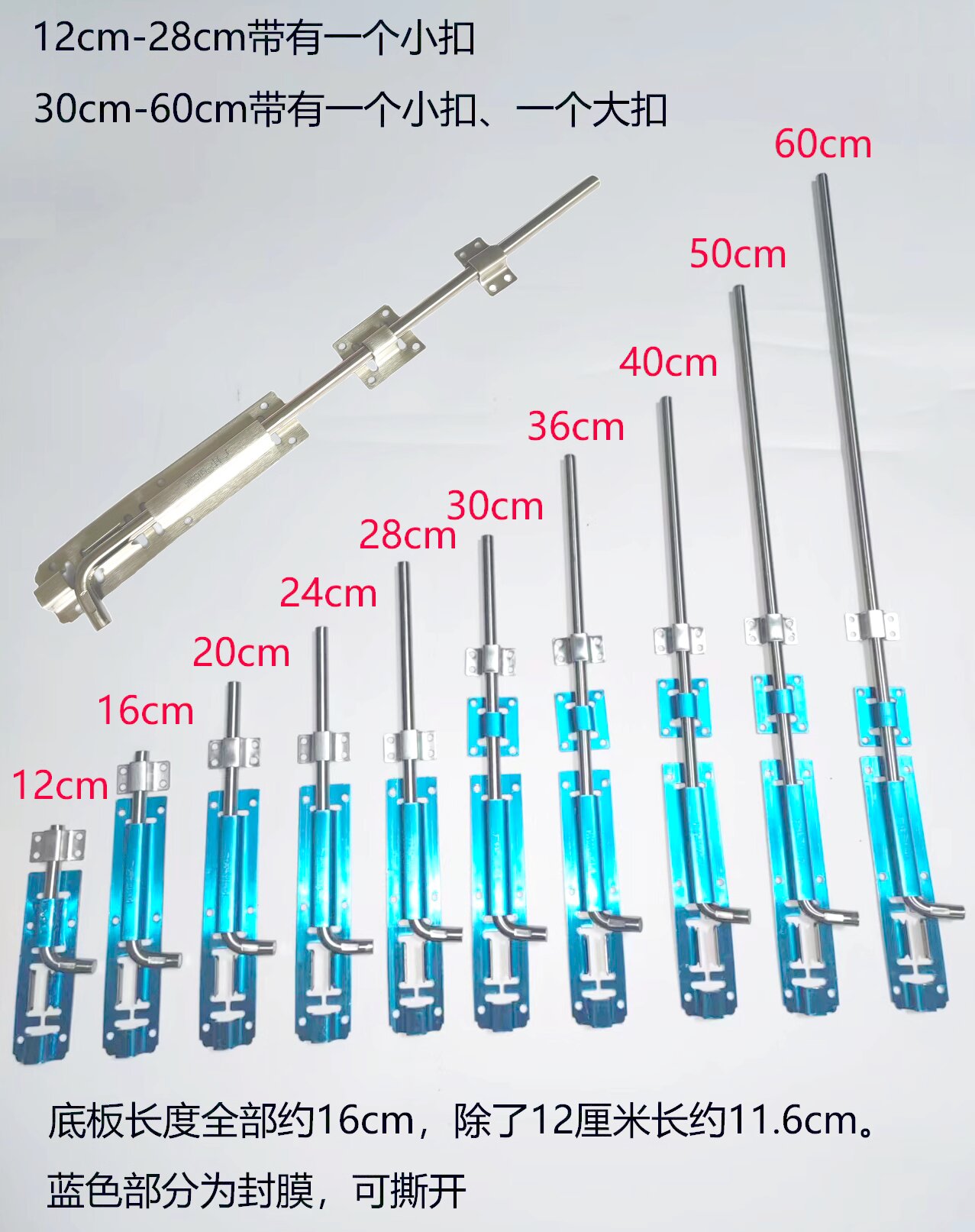 不锈钢加大号加厚大门插销防盗门栓明装 挂锁门闩木门扣锁门销老式