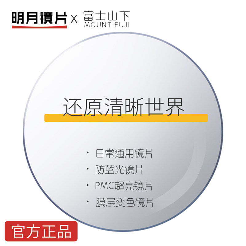 明月镜片官方正品 国产非球面防蓝光配近视眼镜片树脂镜片变色PMC