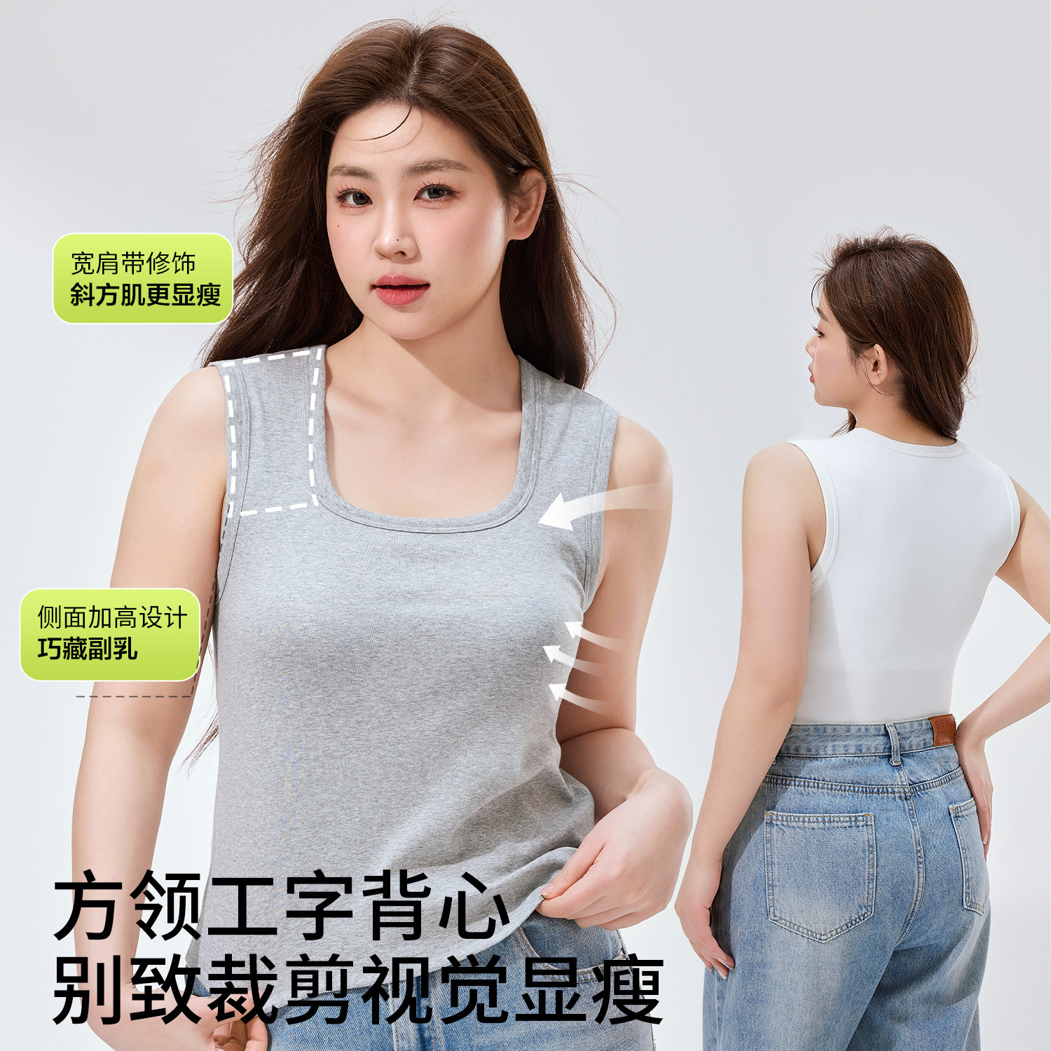 胖mm外穿内搭带胸垫遮副乳显瘦打底 薄款 为体贴大码 吊带背心女夏季