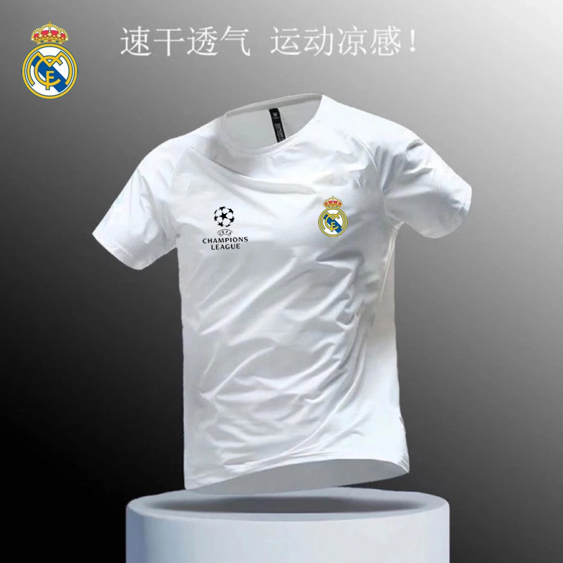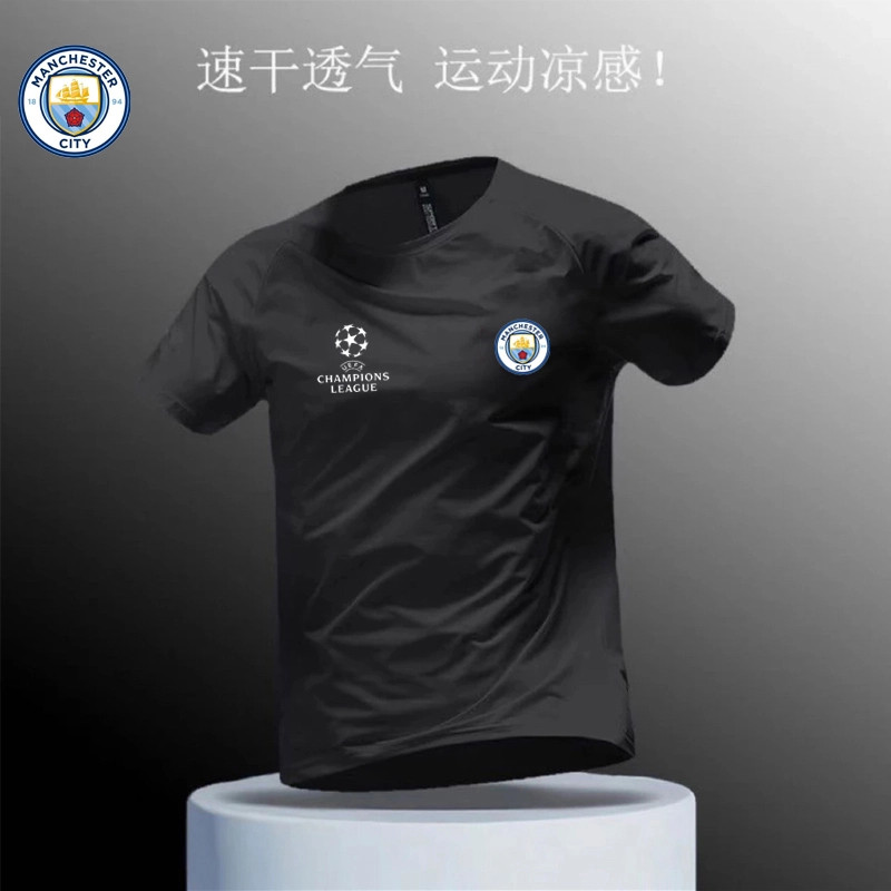 夏季 男女皇马曼城足球运动训练透气圆领T恤宽松休闲上衣 速干短袖