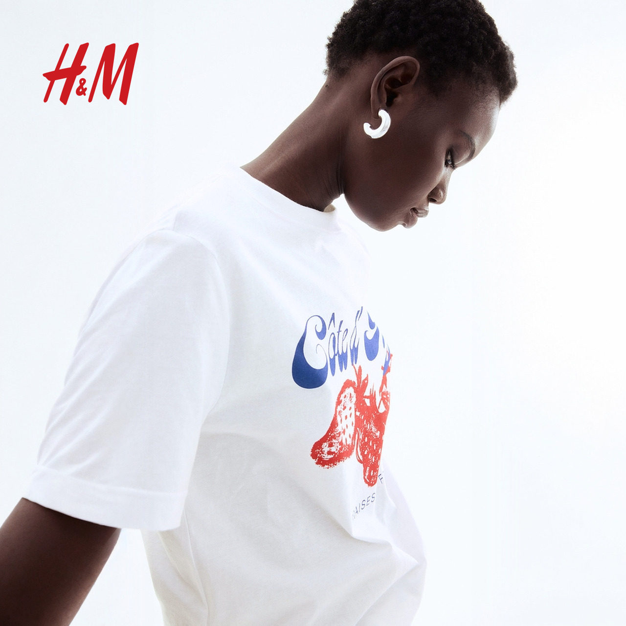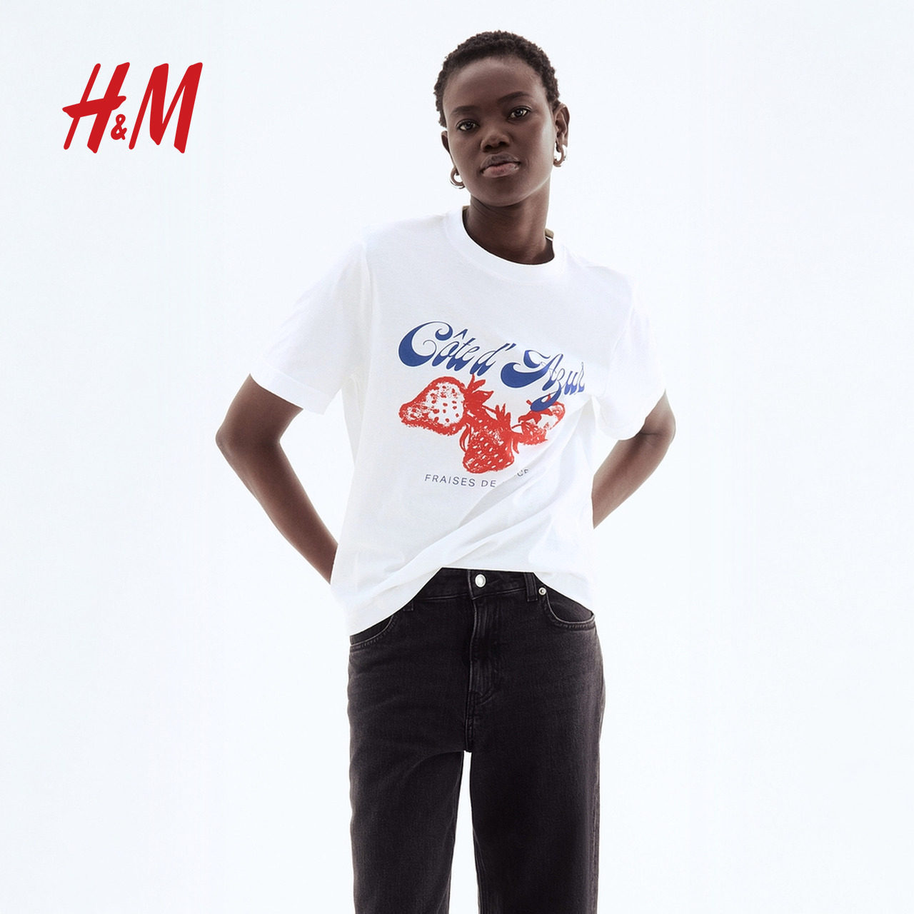 打底清新印花圆领上衣1274171 美式 HM女士T恤春季 短袖