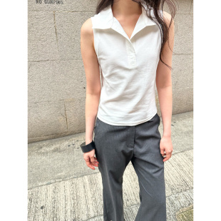 无袖 领修身 Polo衫 女夏季 T恤 UNRETRO甜酷少女美式 小个子短款 衬衫