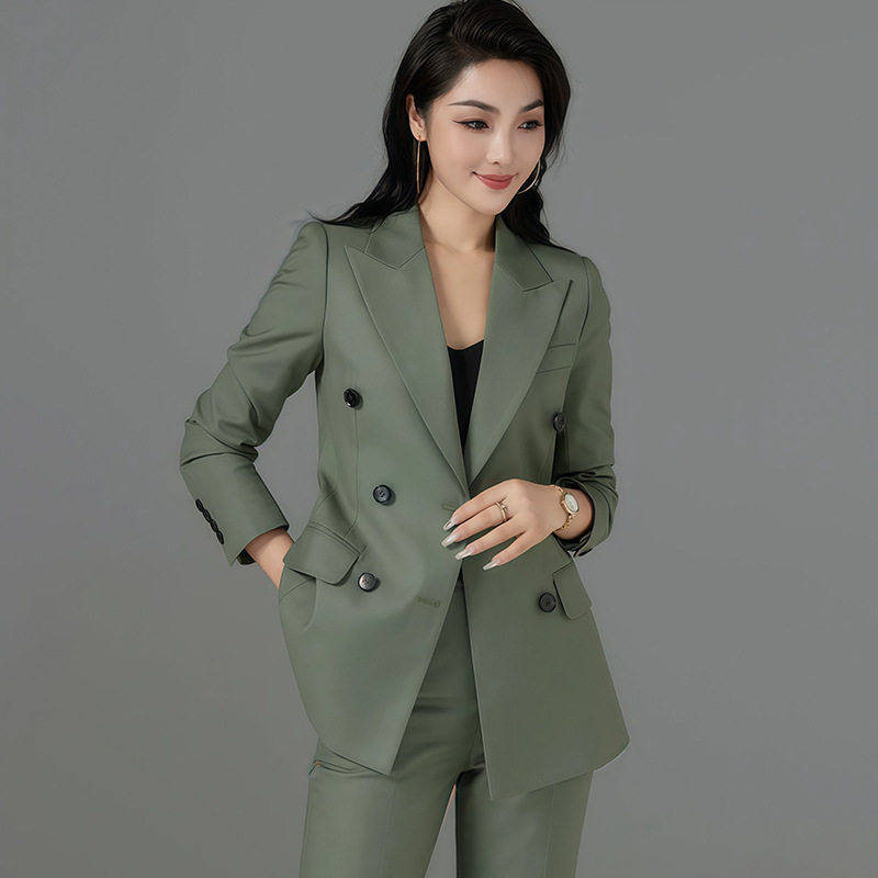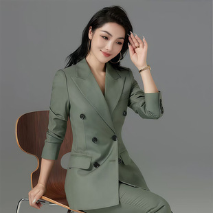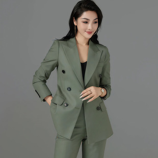 秋季 新款 个性 绿色西装 气质高端简约通勤主播职业女装 女裤 时尚 套装