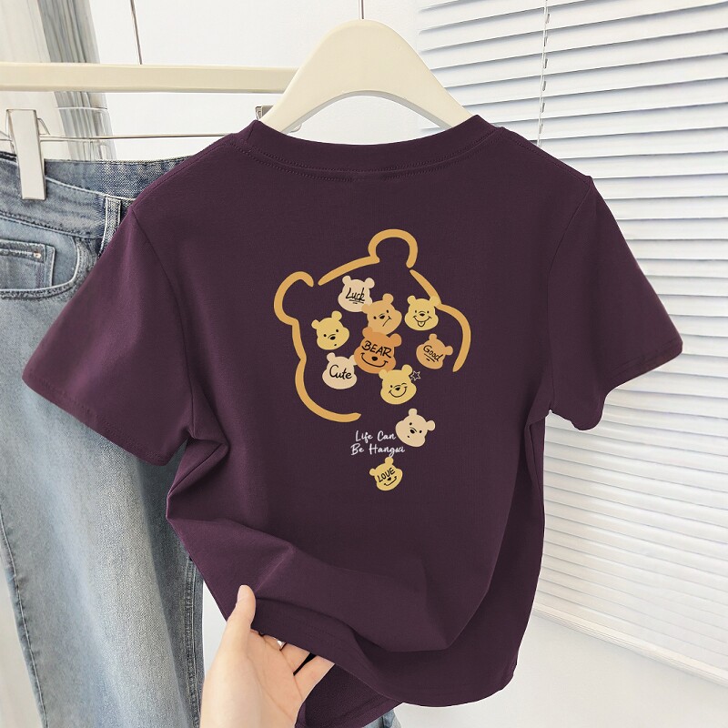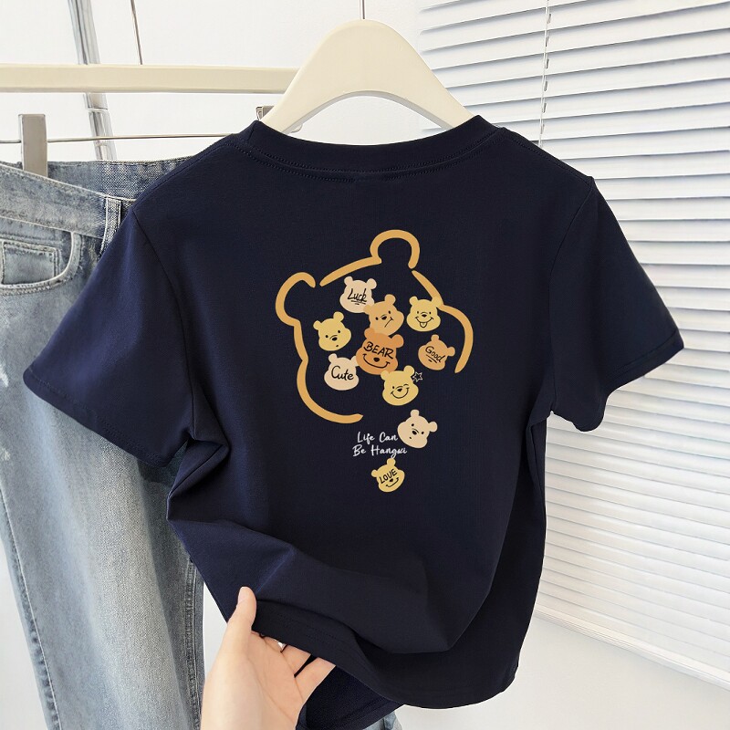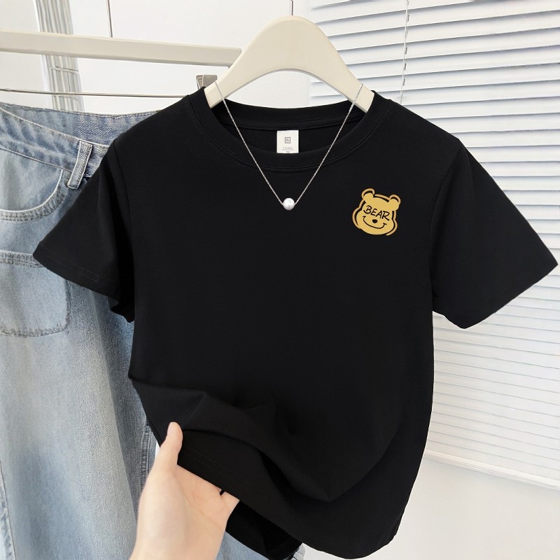 半袖 正肩黑色印花t恤女短袖 气质设计感小众短款 修身 体恤上衣 夏季