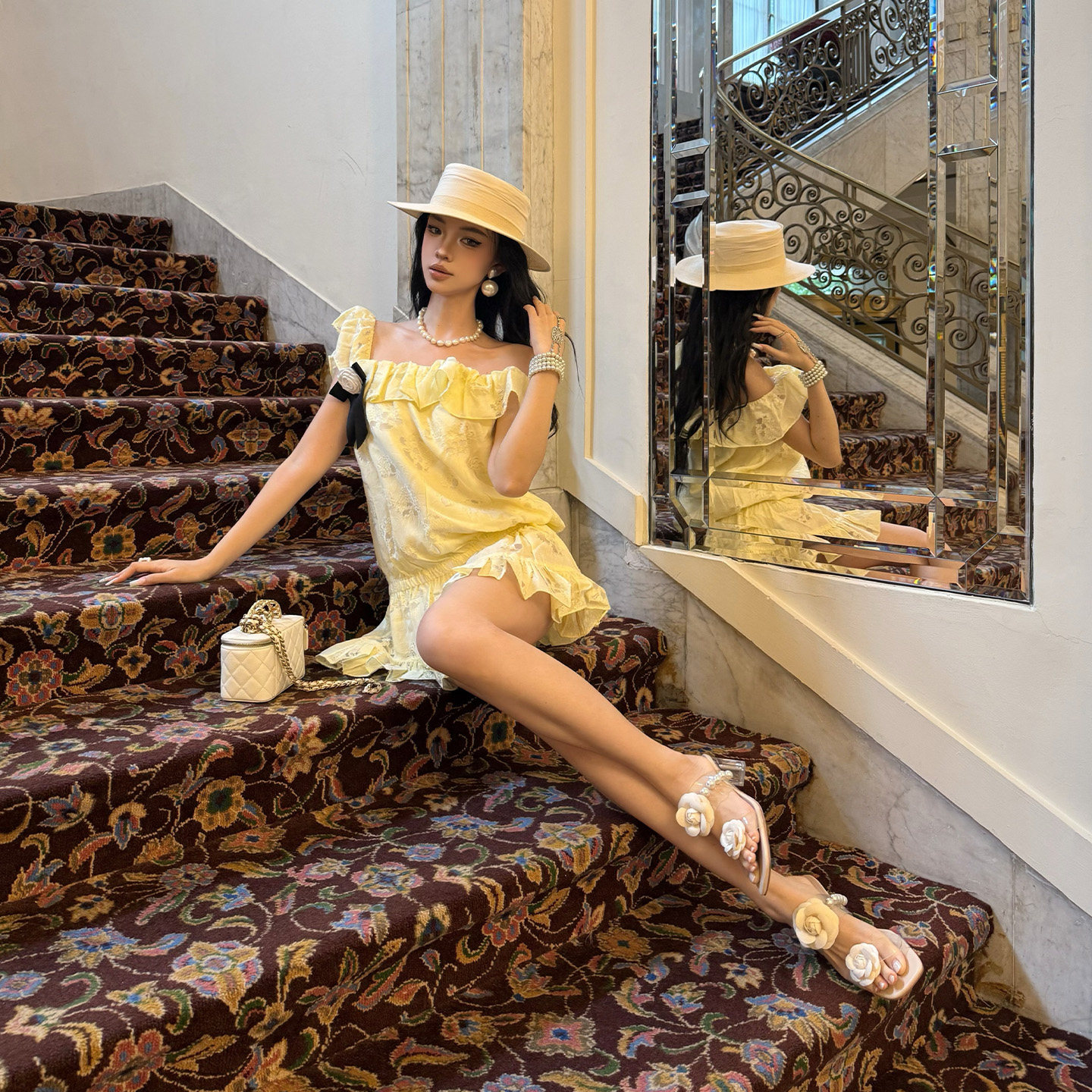 凉拖女25SS PLANGE重工立体珍珠花朵无痕中跟拖鞋 徐如蓝同款 MIMI