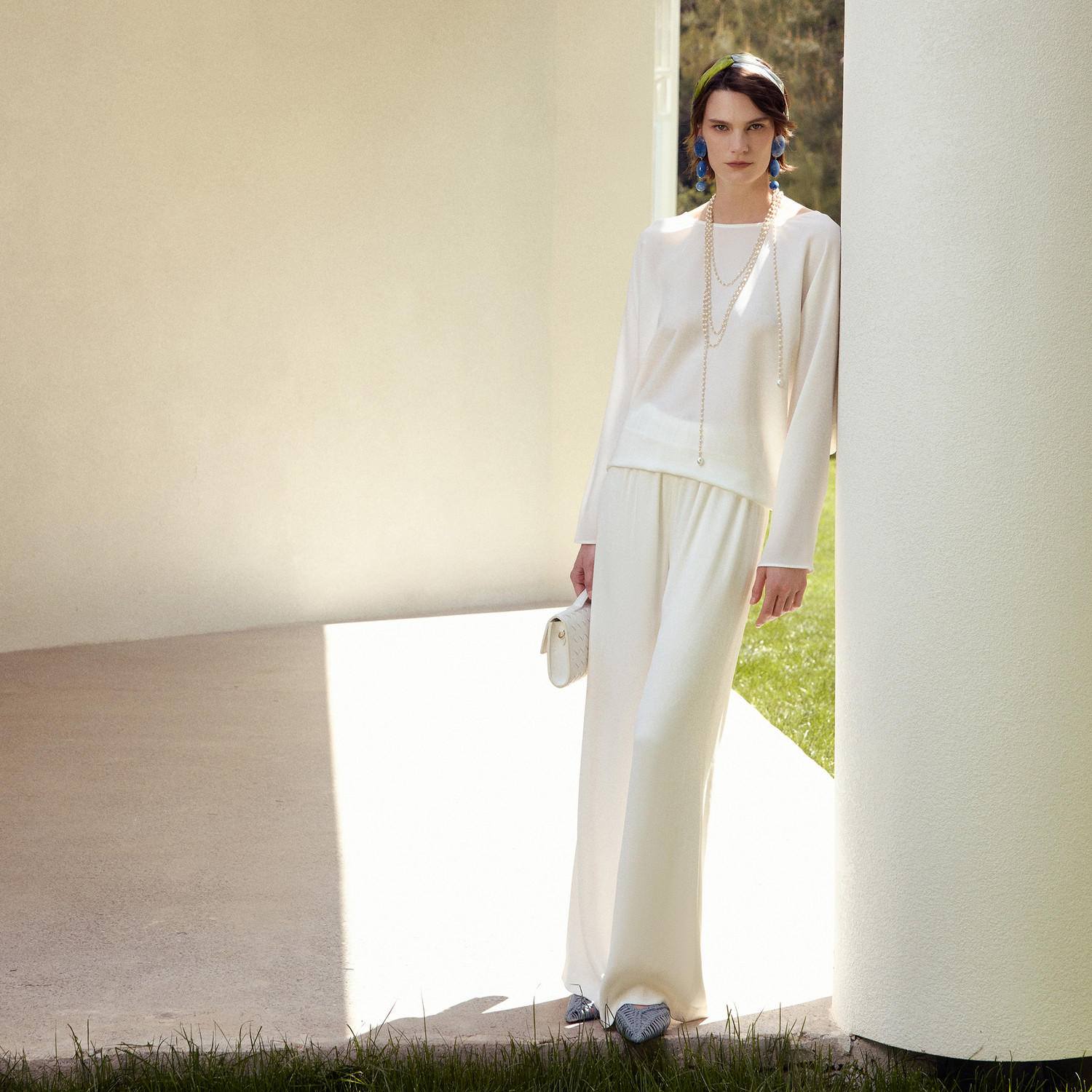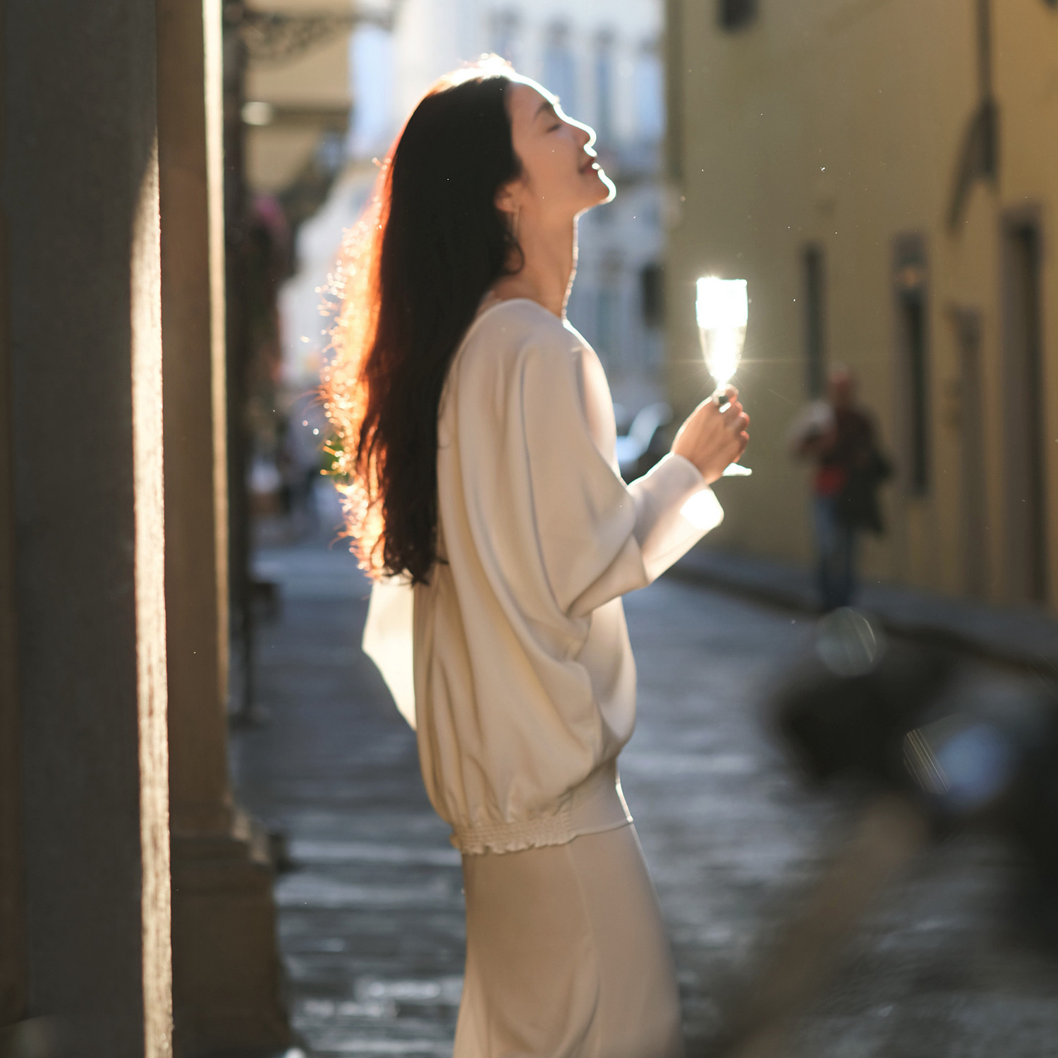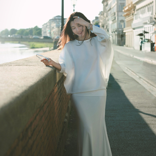 百搭气质上衣女 木耳领衬衫 仙草宝相提花缎真丝桑蚕丝白色法式 长袖