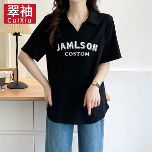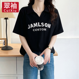 正肩短袖 翠袖 polo衫 女装 t恤女夏胖mm宽松巨遮肚显瘦休闲上衣 大码