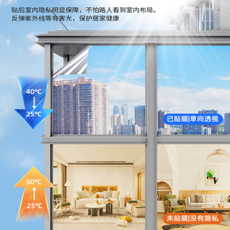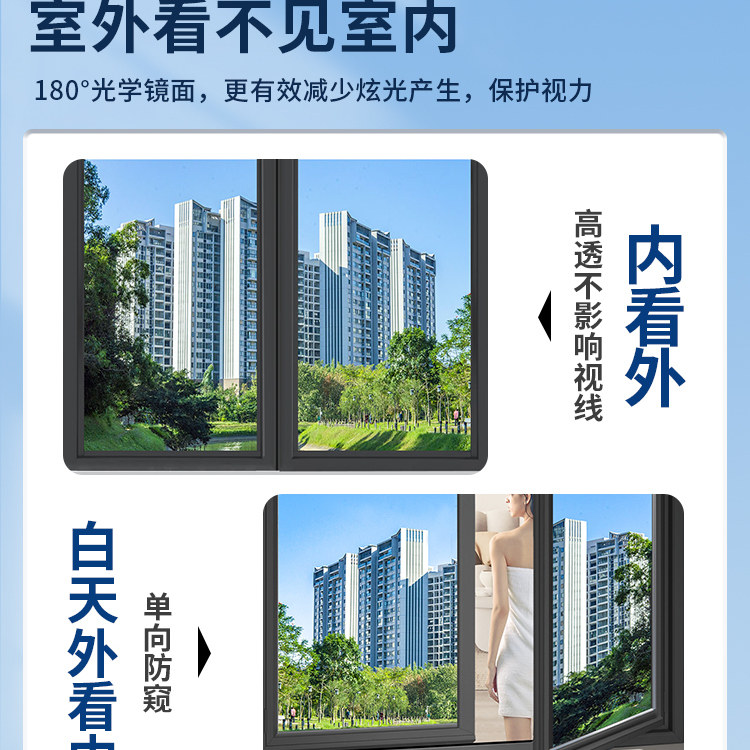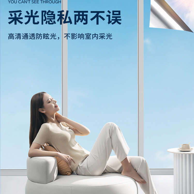 单向透视镜面反光玻璃膜防窥防走光窗户贴纸透光不透明防晒玻璃贴