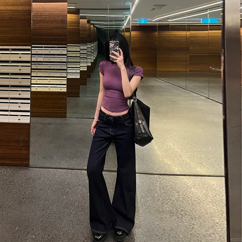 显瘦辣妹短款 修身 上衣 t恤女夏季 MosesQueen魔西女王紫色正肩短袖