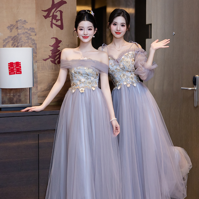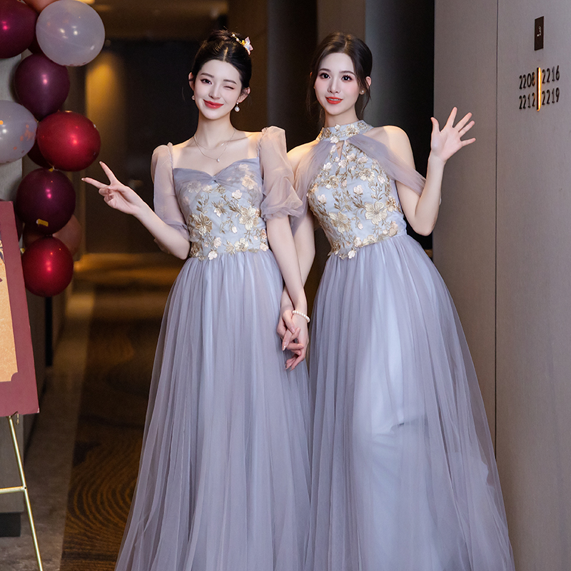 网纱裙伴娘服女2025新款 灰色高级小众姐妹服伴娘团仙气晚礼服夏季