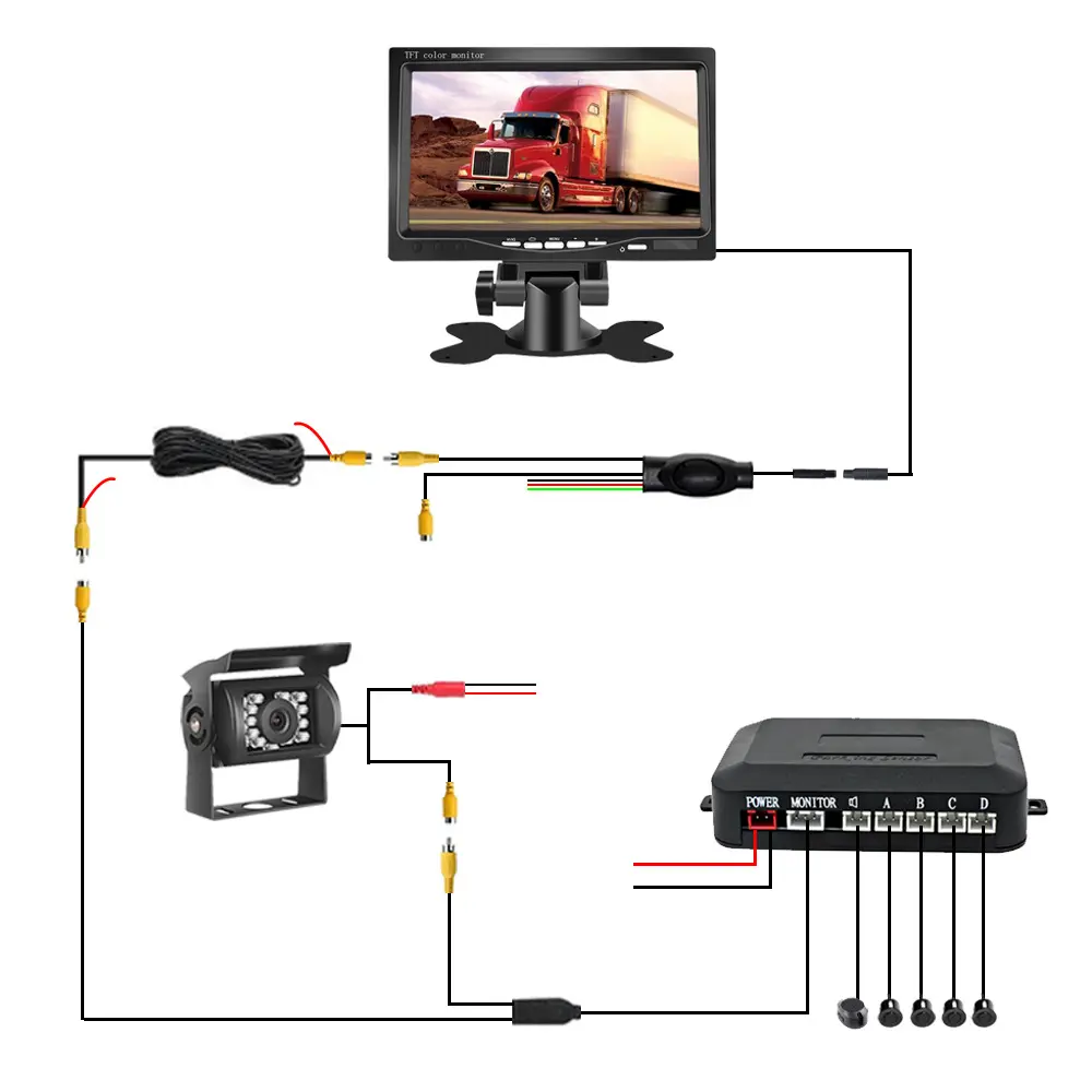 7寸可视倒车雷达系统倒车雷达头显示器一体机2米雷达影像系统