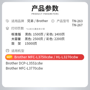 L3551cdw一体机L3770cdw墨盒TN267 L3270cdw彩色打印机碳粉DCP 兮夜适用兄弟TN263粉盒MFC L3750cdw硒鼓HL