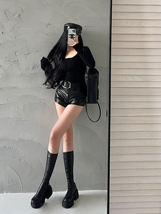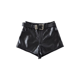 含腰带潮 包臀热裤 YoungGirlDay美式 辣妹性感高腰紧身显瘦pu皮短裤