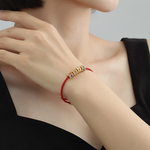周六福黄金转运珠路路通男款 足金定价手绳天官赐福手链送礼物官方