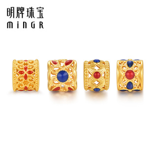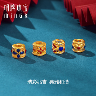周六福黄金转运珠女5d硬金定价路路通手捧花不含绳妈妈官方礼物