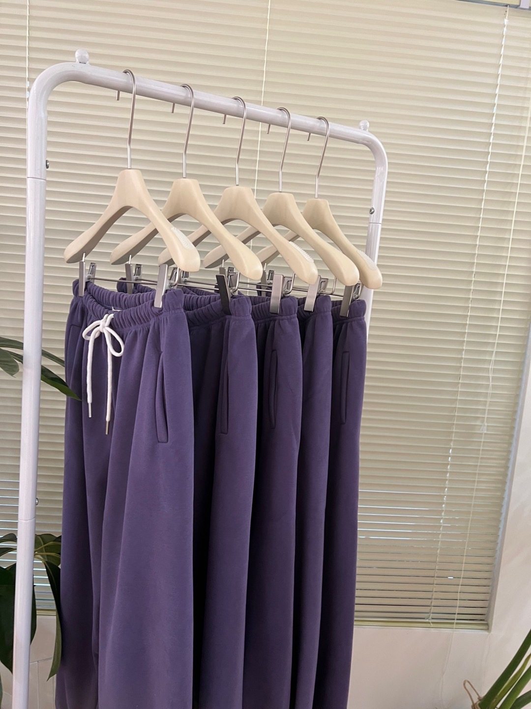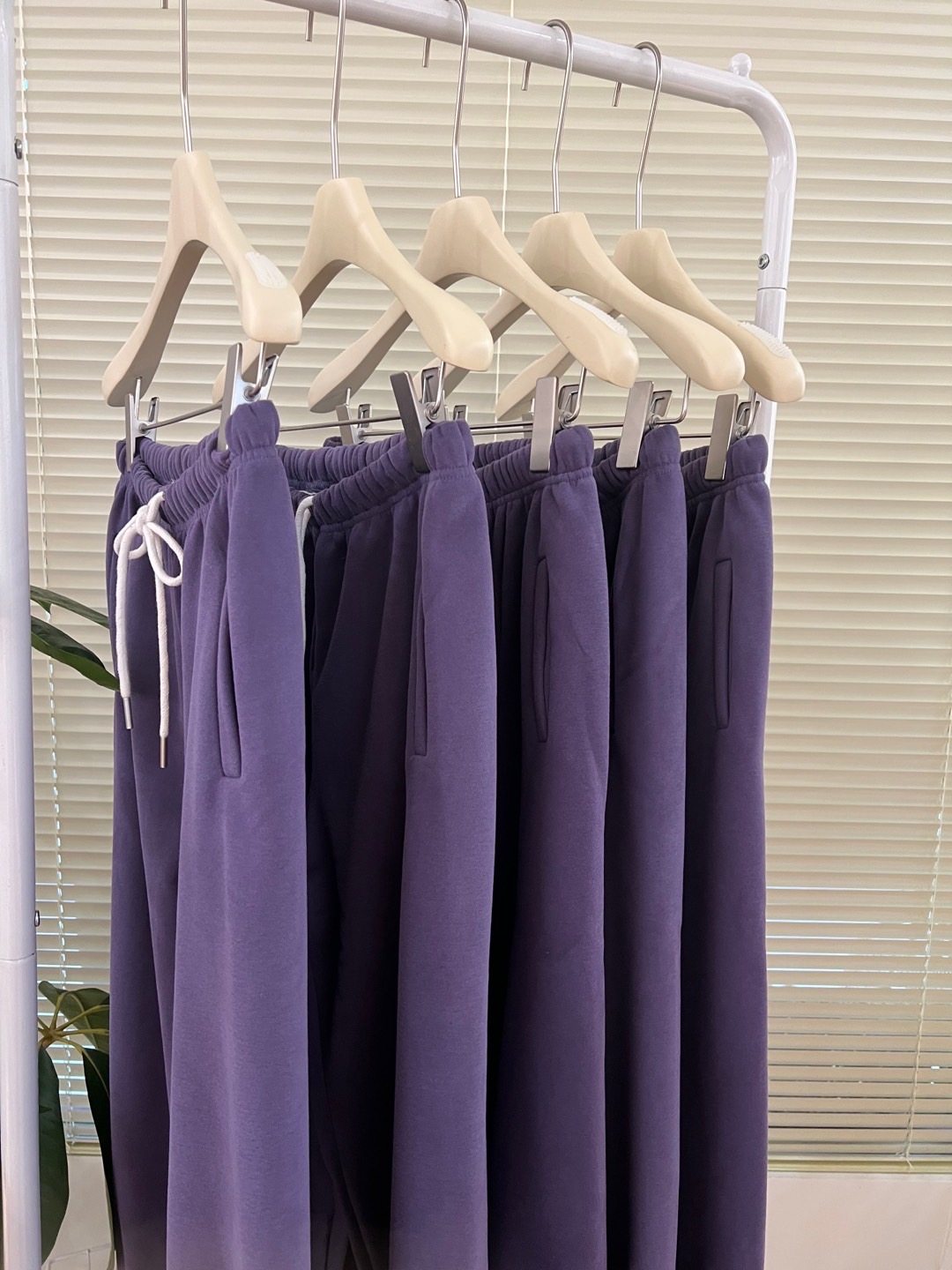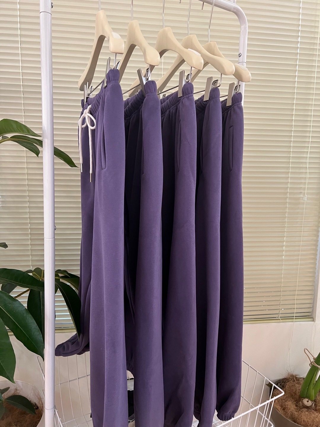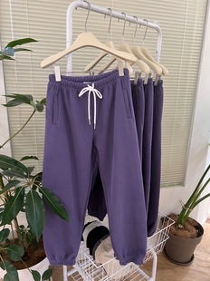 紫色休闲裤 人手一条 韩国抽绳束脚慵懒舒适加绒卫裤
