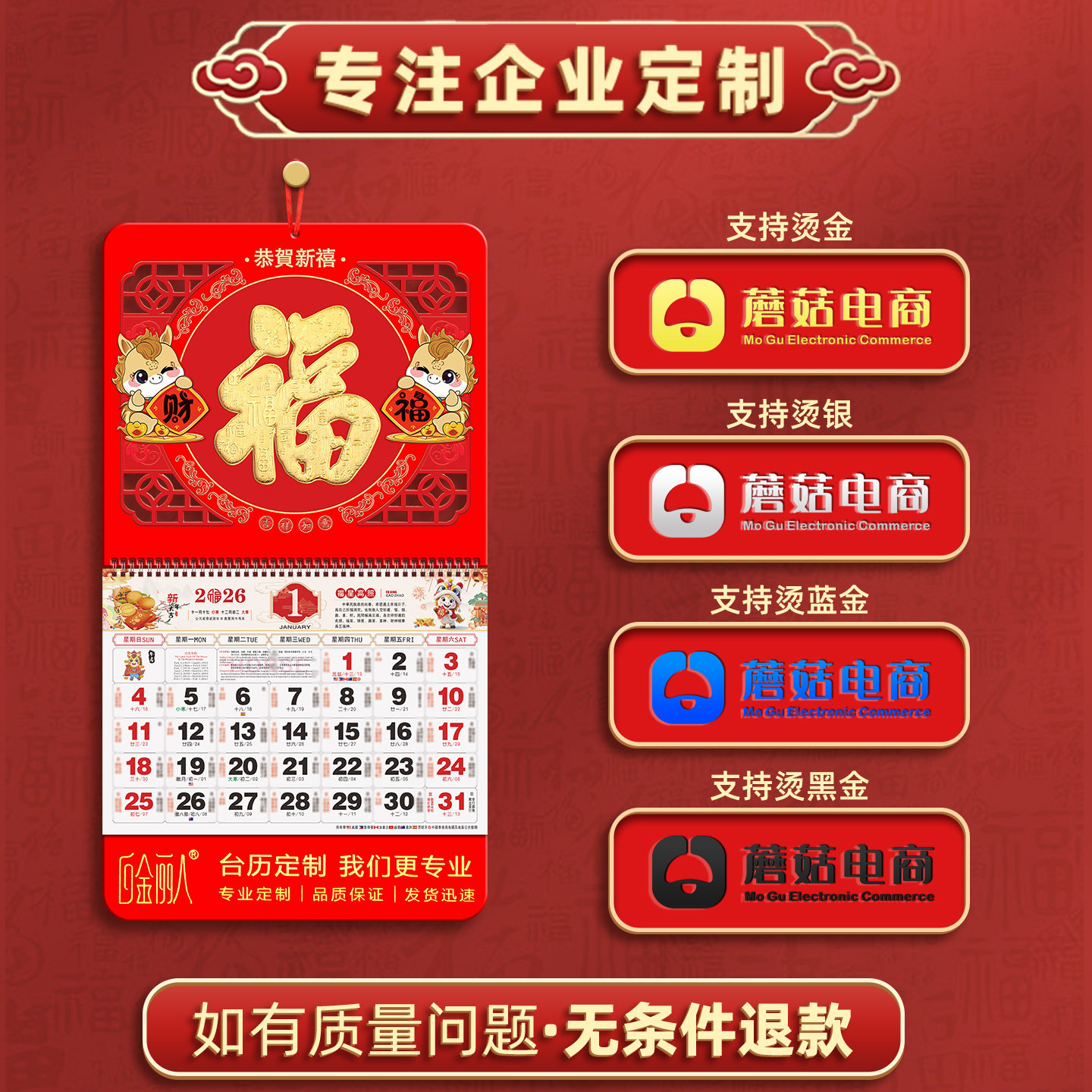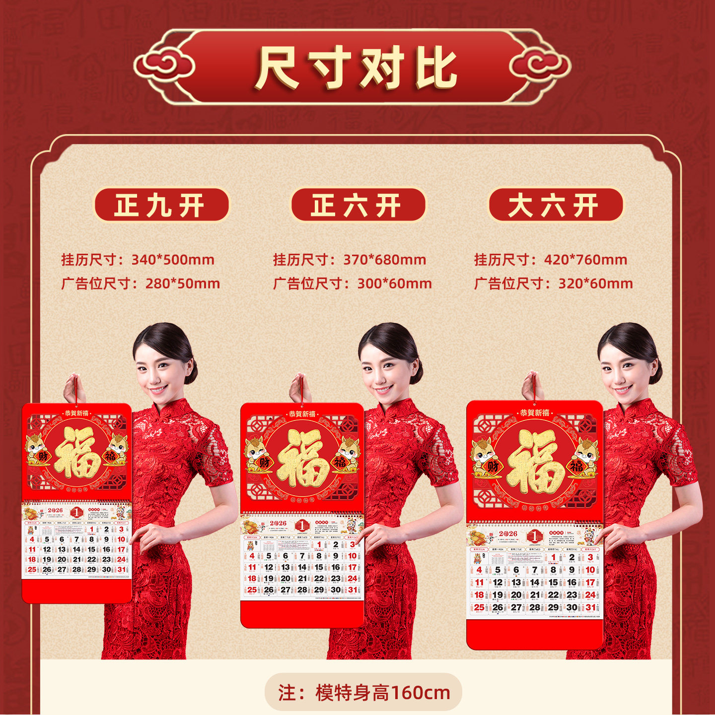 大号挂墙老式 日历月历定制公司广告家用金箔福字福牌手撕订制新款 大挂历送礼 马年老黄历挂式 2026年挂历新款