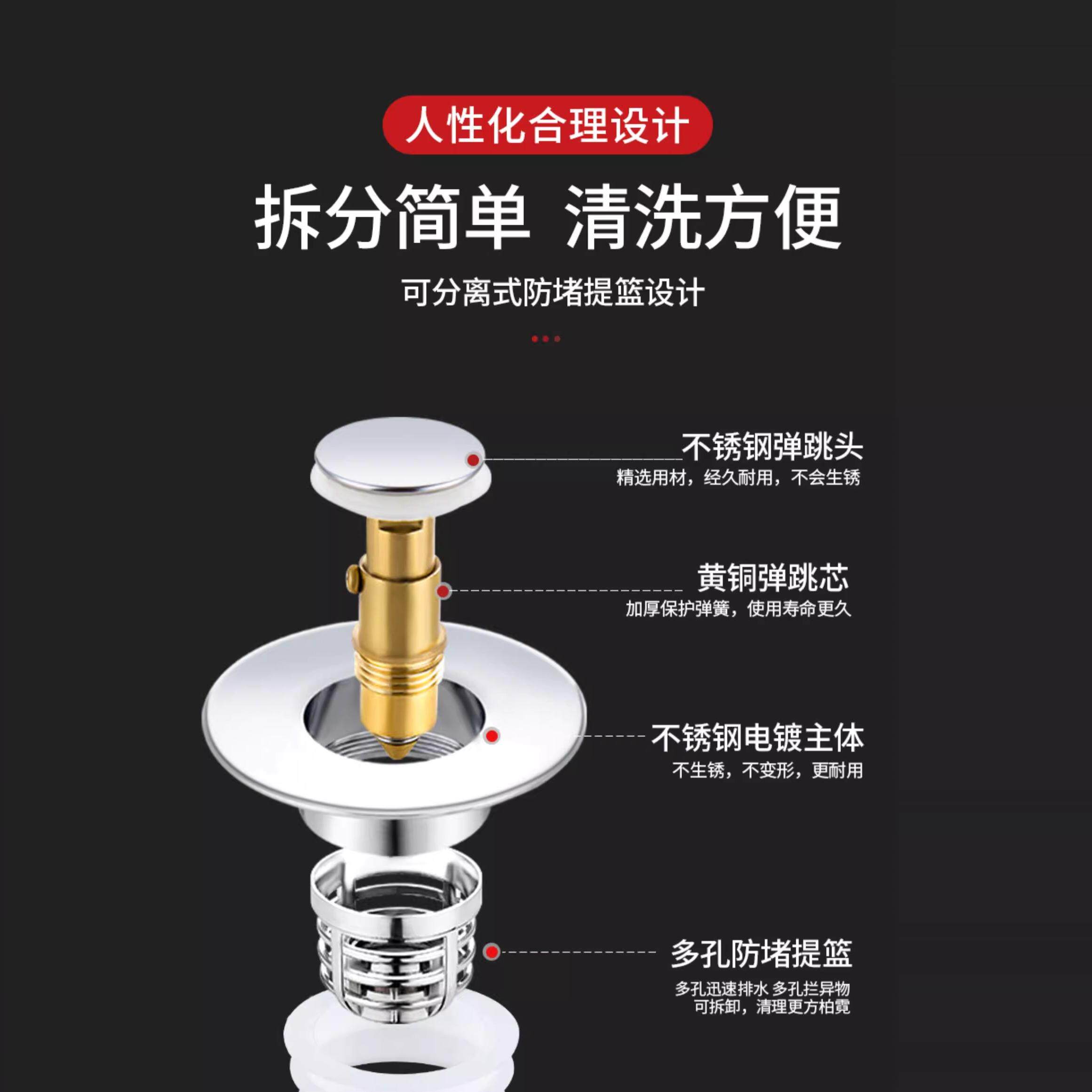 洗手盆按压式 弹跳芯漏水塞子下水器防臭防堵过滤密封洗脸盆配件
