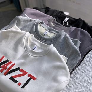 圆领保暖长袖 软糯长绒棉 男士 简洁字母冬季 上卫衣A2686 加绒加厚