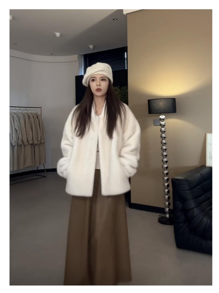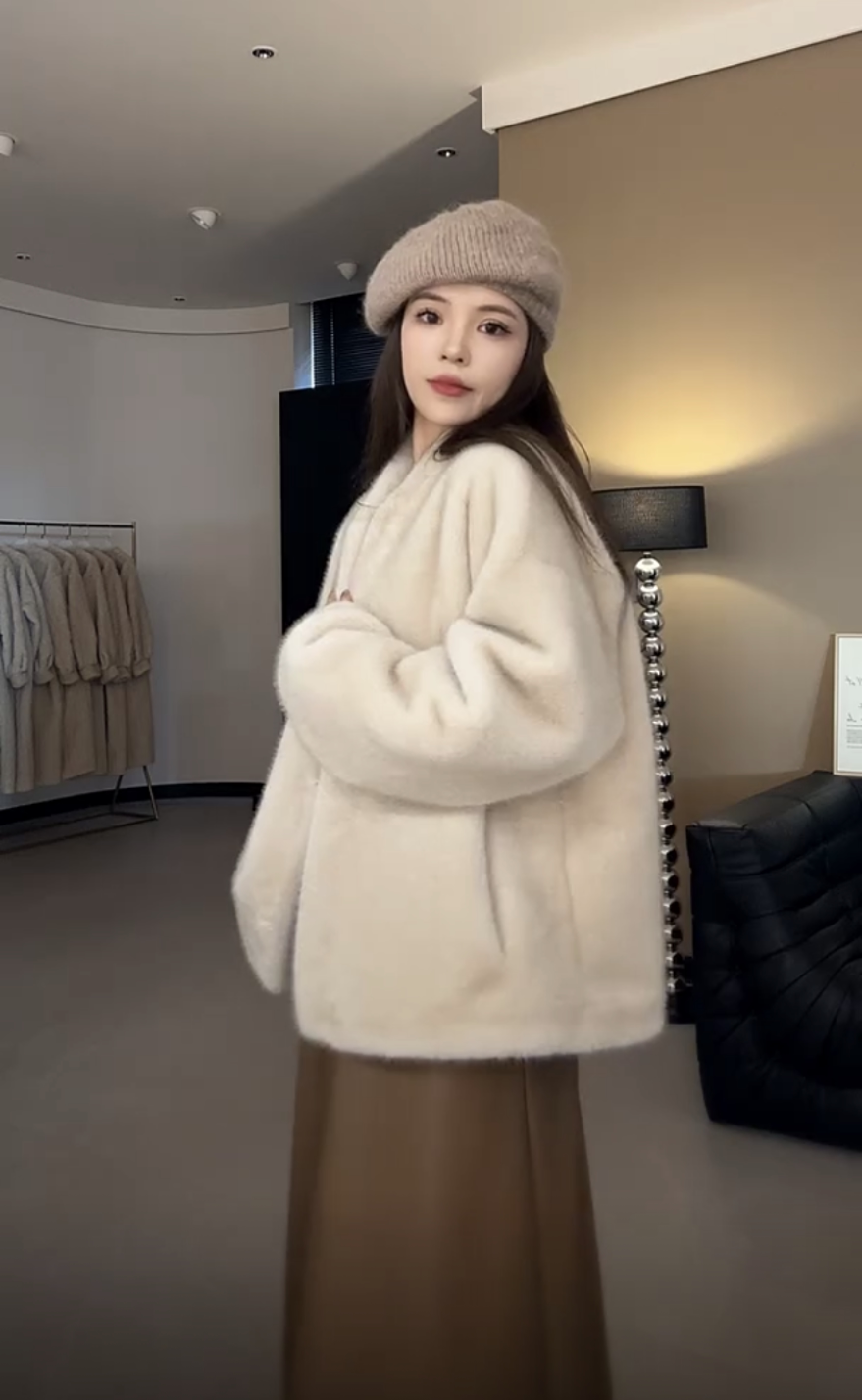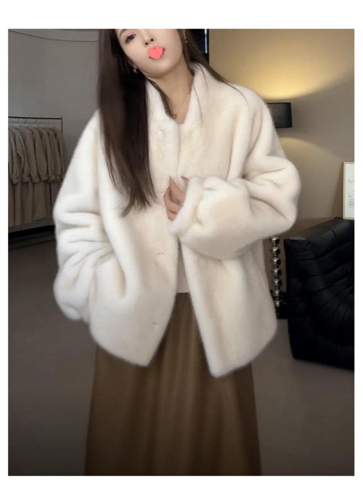2025冬新款 小立领简约皮草外套加厚环保皮毛一体大衣女 仿水貂短款