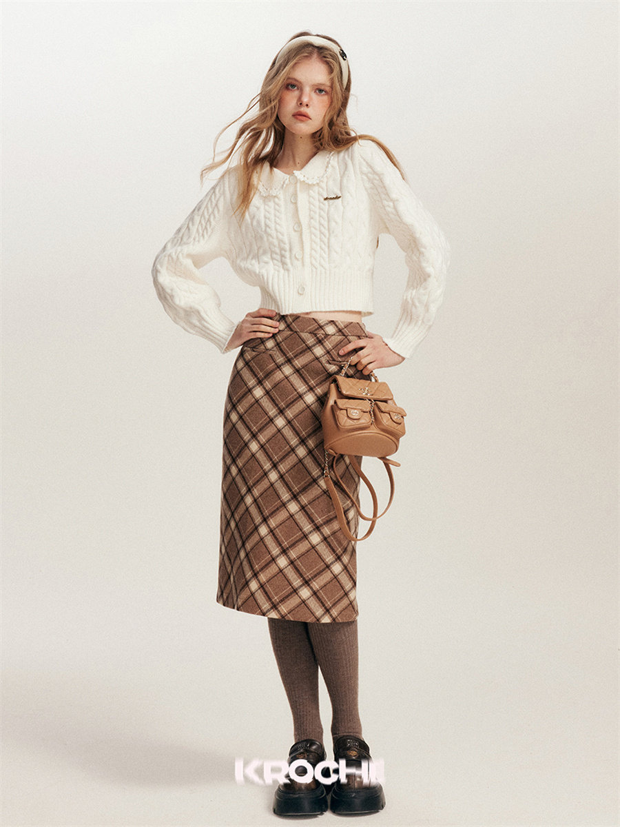 韩系超好看毛呢格子半身裙子女秋冬季 高腰显瘦a字长裙 2025年新款