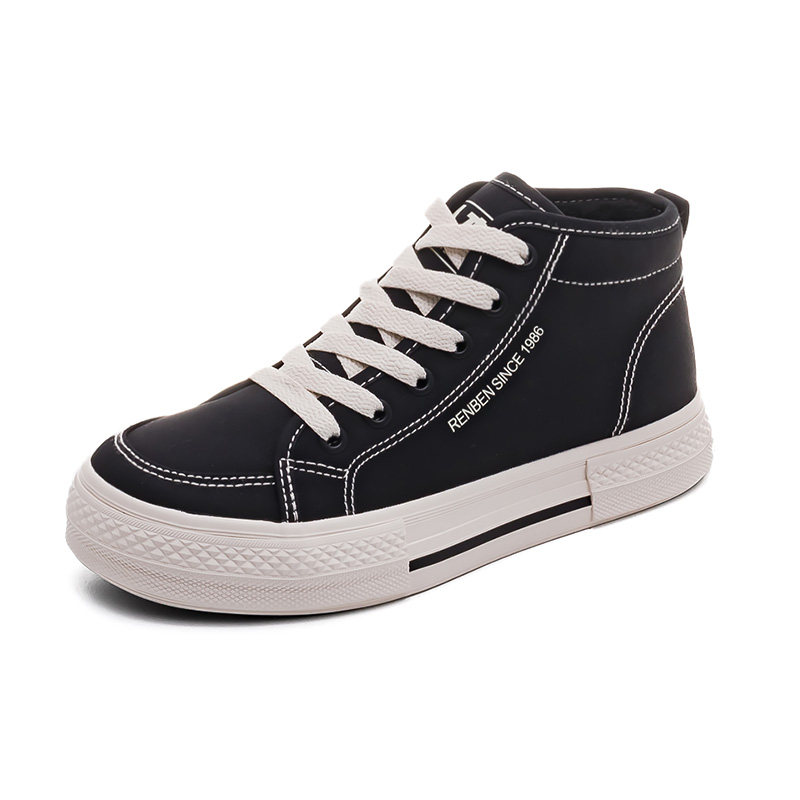 校园风W系列翻毛皮帆布拼接男女国潮滑板鞋 顽刻官方经典 黑白春季