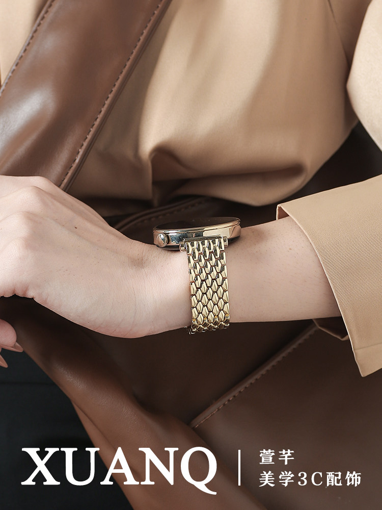 萱芊适用于华为GT6龙鳞纹金属男士 女高级感轻奢小香风荣耀 华为手表GT5GT4表带watch543pro女GT3GT2表带新款
