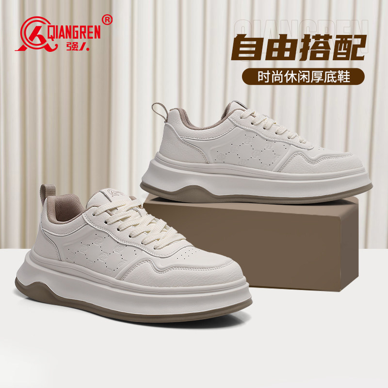 女鞋 2025秋季 女松糕厚底老爹百搭运动鞋 休闲皮面防水防滑板鞋 新款