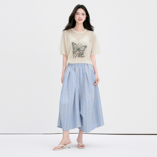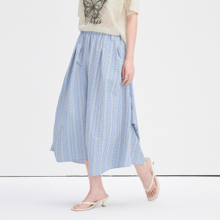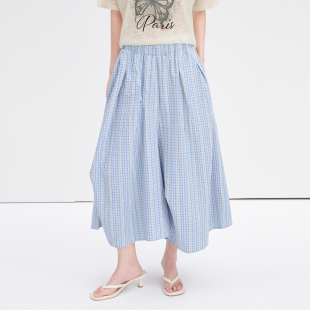 House 宽松不规则阔腿裤 百家好松紧腰蓝白格纹裙裤 新款 夏季 Basic