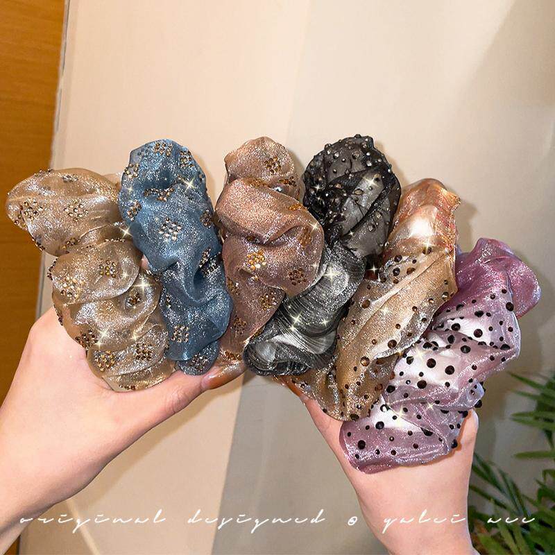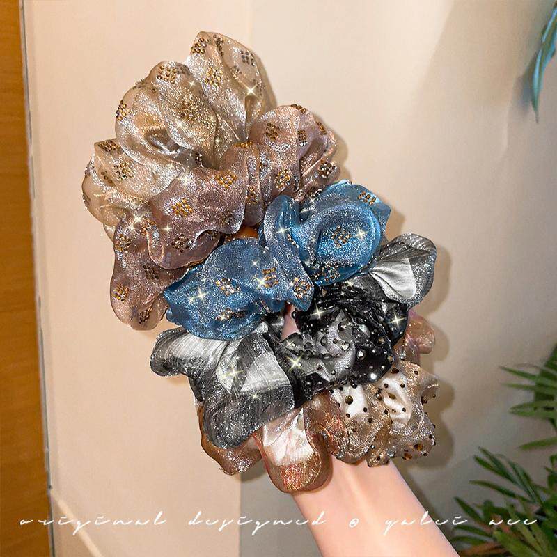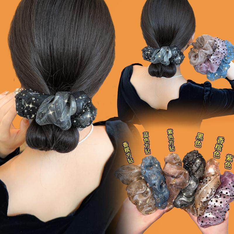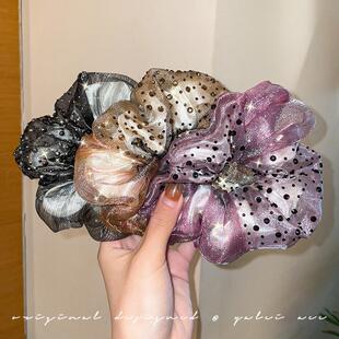 妈妈发圈满天星头饰法式 双层水钻欧根纱甜美气质头花扎头发头绳女