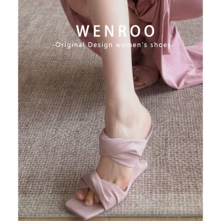 褶皱绝美凉拖鞋 粉色小众设计露趾高跟凉鞋 法式 新款 女外穿2026夏季