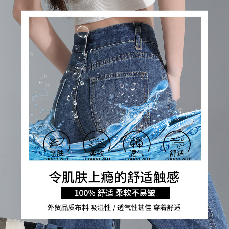 子200斤 女高腰显瘦裤 一条过冬胖mm加绒直筒牛仔裤 木子理想大码