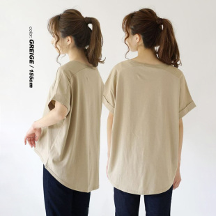 圆领T恤女 纯棉纯色糖果色宽松显瘦前短后长挽边短袖 日单夏季 新款