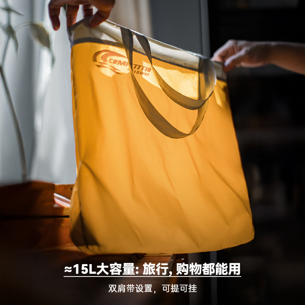 马登工装 日系折叠大容量托特包黄色超轻便尼龙户外通勤旅行手提包